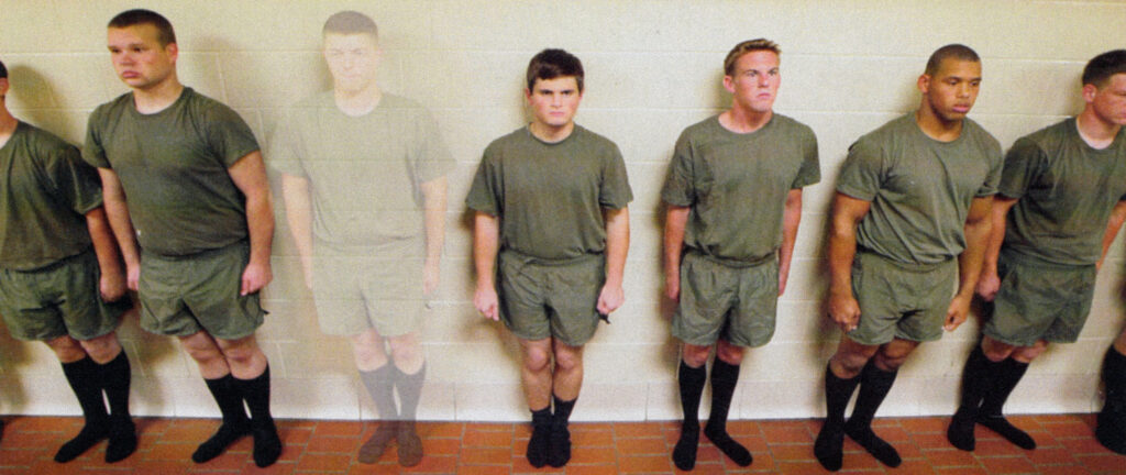 Almost all of the deserters I spoke to described the kind of person they thought succeeded in the military as “an alpha male type who can take orders real well,” as one Marine put it. “If you can’t do both? Don’t join.” Physical aggression and mental docility might seem an unlikely pairing, but as the military historian Gwynne Dyer wrote in his book titled, simply, War, “Basic training has been essentially the same in every army in every age, because it works with the same raw material that’s always there in teenage boys: a fair amount of aggression, a strong tendency to hang around in groups, and an absolute desperate desire to fit in.”